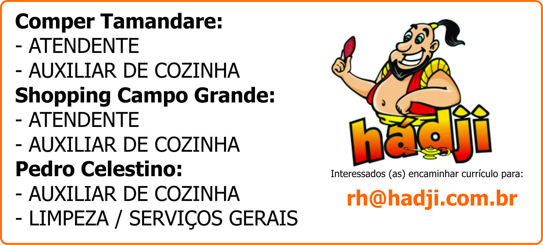 Hádji - Atendente / Auxiliar de Cozinha / Limpeza / Serviços Gerais