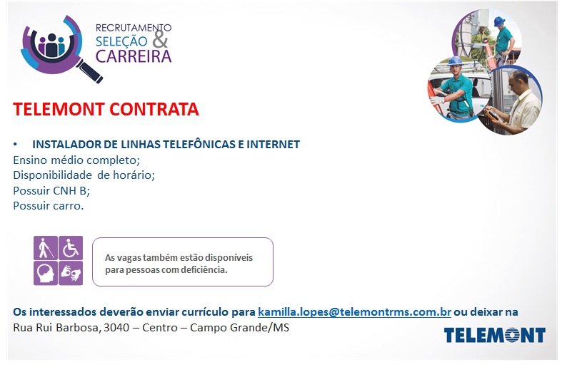 Os interessados deverão enviar currículo para [email protected] ou deixar na Rua Rui Barbosa, 3040 – Centro – Campo Grande/MS