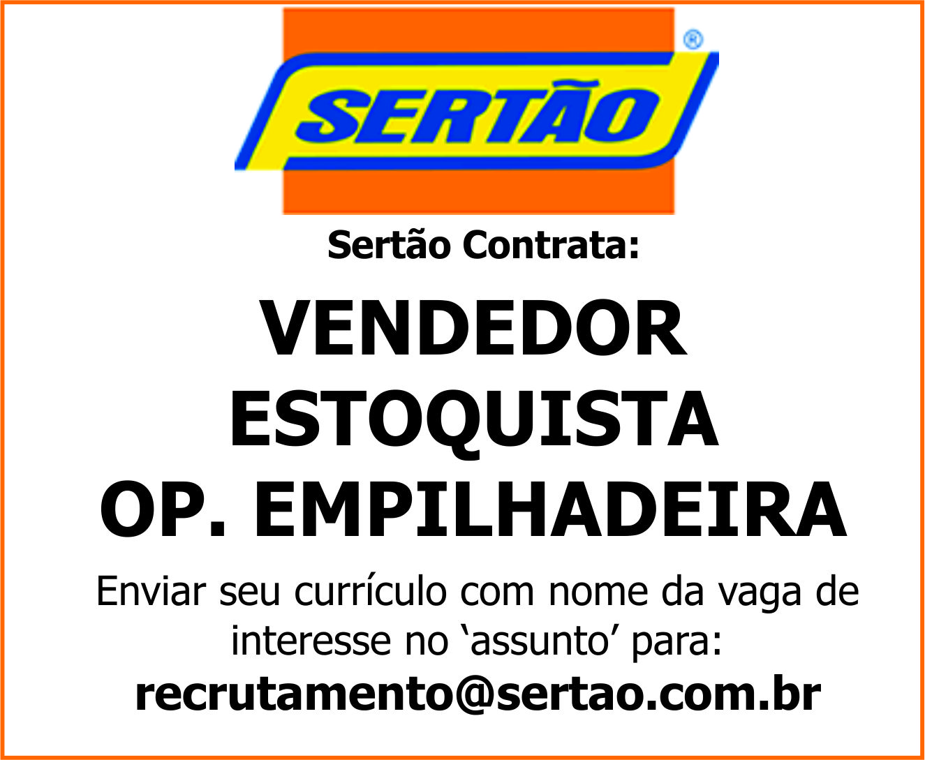 LOJAS SERTÃO CONTRATA: