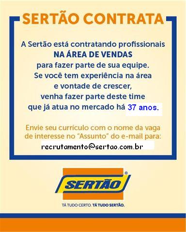 LOJAS SERTÃO CONTRATA PARA ÁREA DE VENDAS: