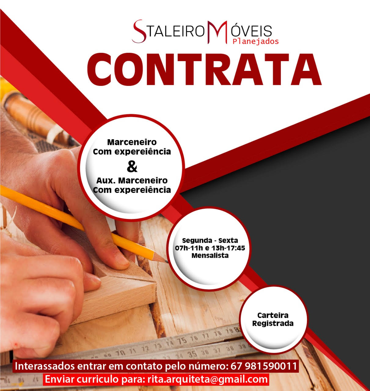 MARCENEIRO E AUX. DE MARCENEIRO COM EXPERIÊNCIA: