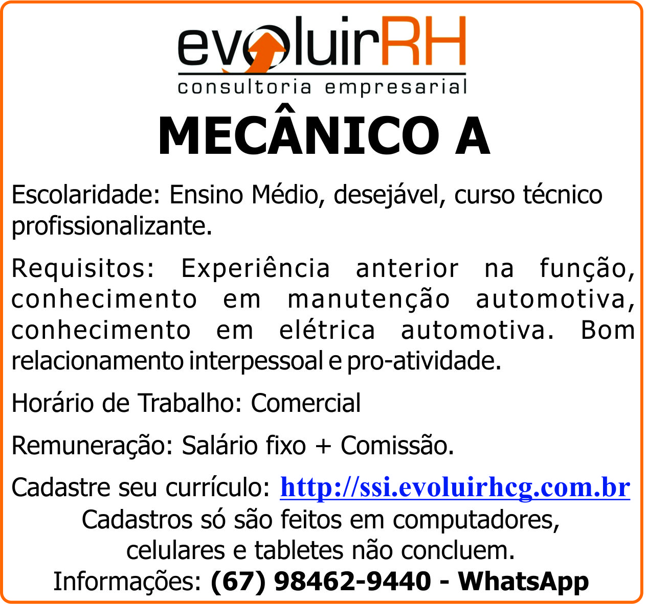 Cadastre seu currículo: http://ssi.evoluirhcg.com.br