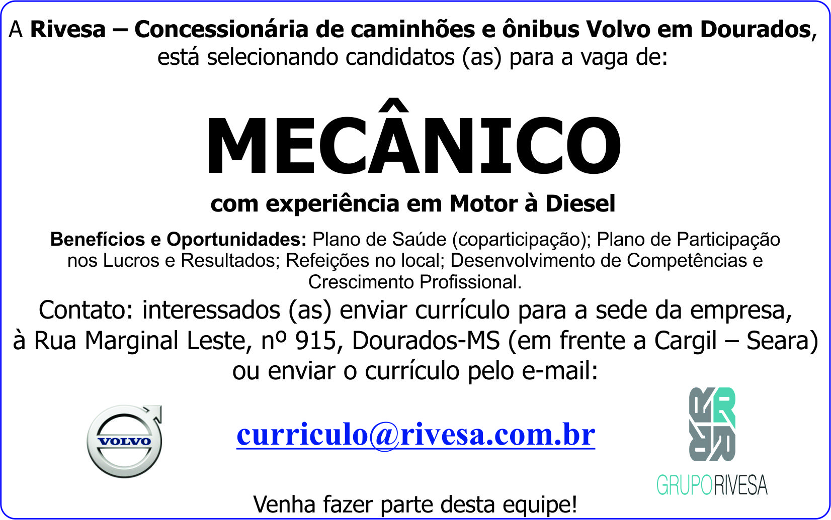 Venha fazer parte desta equipe! Enviar currículo:
