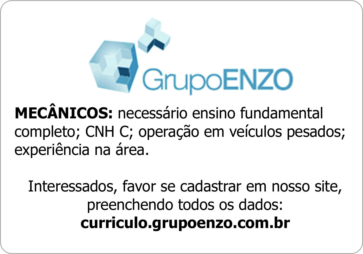 MECÂNICOS: necessário ensino fundamental completo; CNH C; operação em veículos pesados; experiência na área.