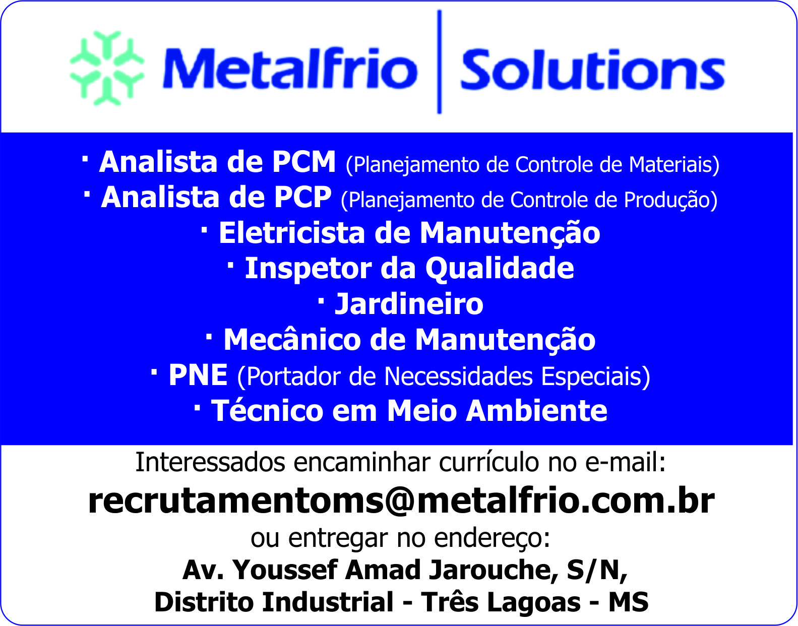 Metal Frio - Analista de PCM / Analista de PCP / Jardineiro / Eletricista de Manutenção / Inspetor de Qualidade / Mecânico de Manutenção / Técnico em Meio Ambiente / PNE [email protected]