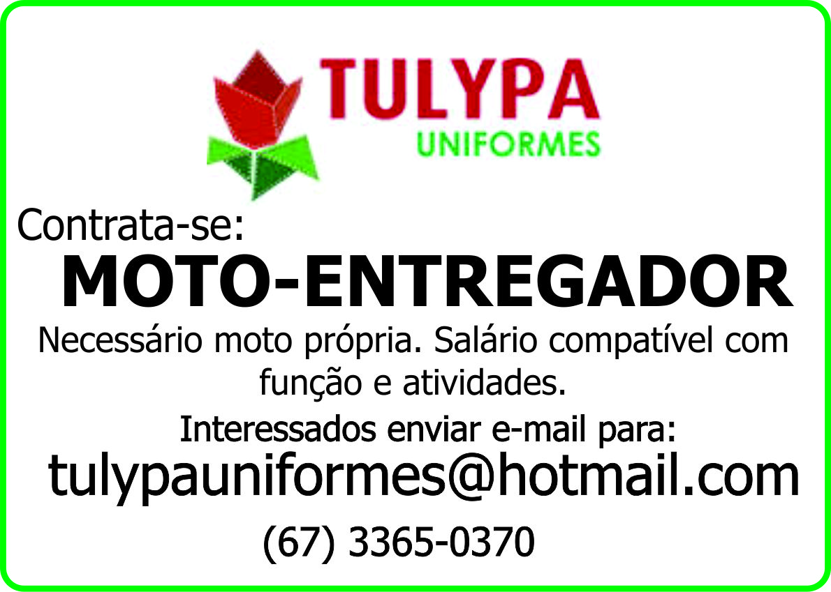 Necessário moto própria. Salário compatível com função e atividades.