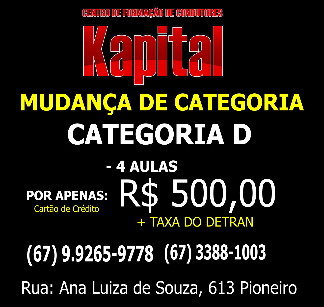 MUDANÇA DE CATEGORIA (CATEGORIA D) - POR APENAS R$ 500,00