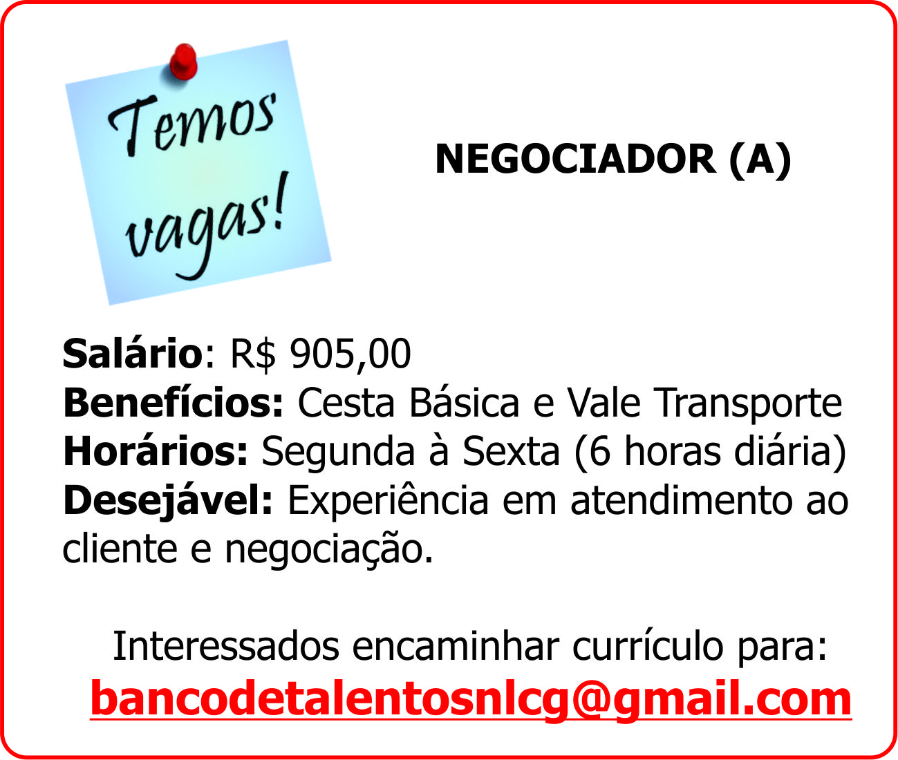 Desejável: Experiência em atendimento ao cliente e negociação.