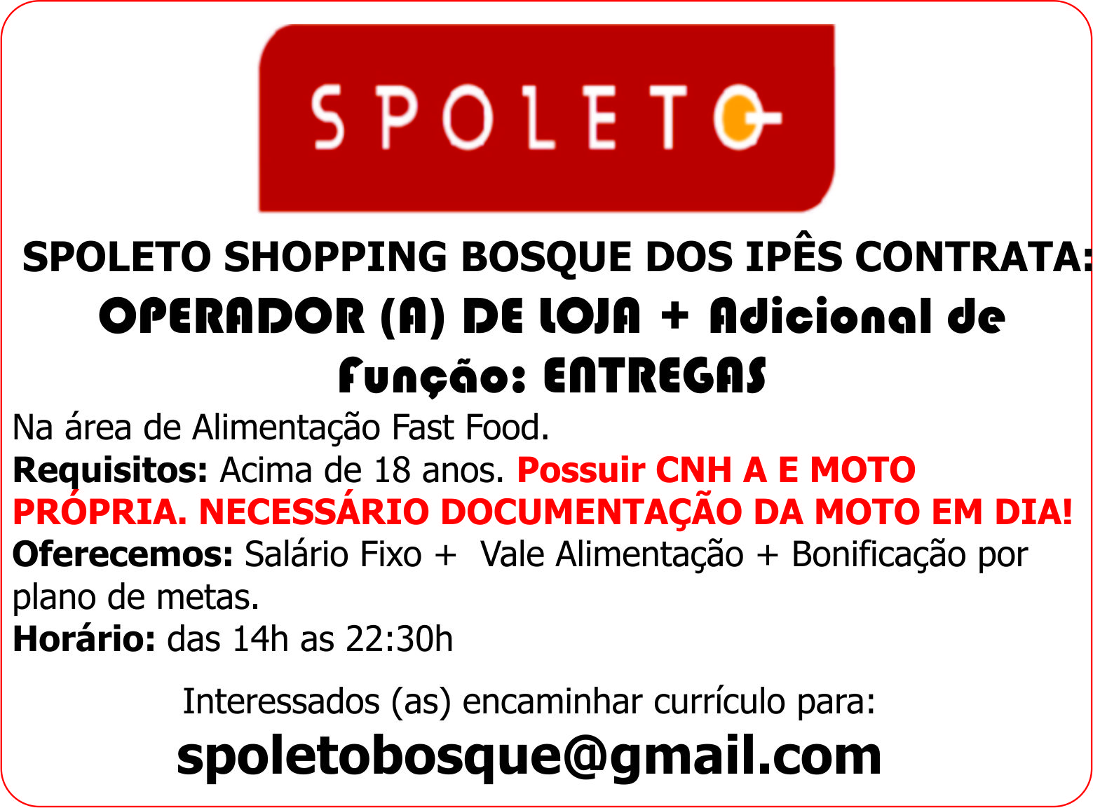 OPERADOR (A) DE LOJA + Adicional de Função: ENTREGAS