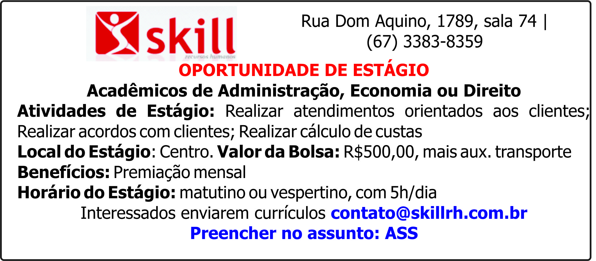 Oportunidade de Estágio Acadêmico - Administração, Economia ou Direito