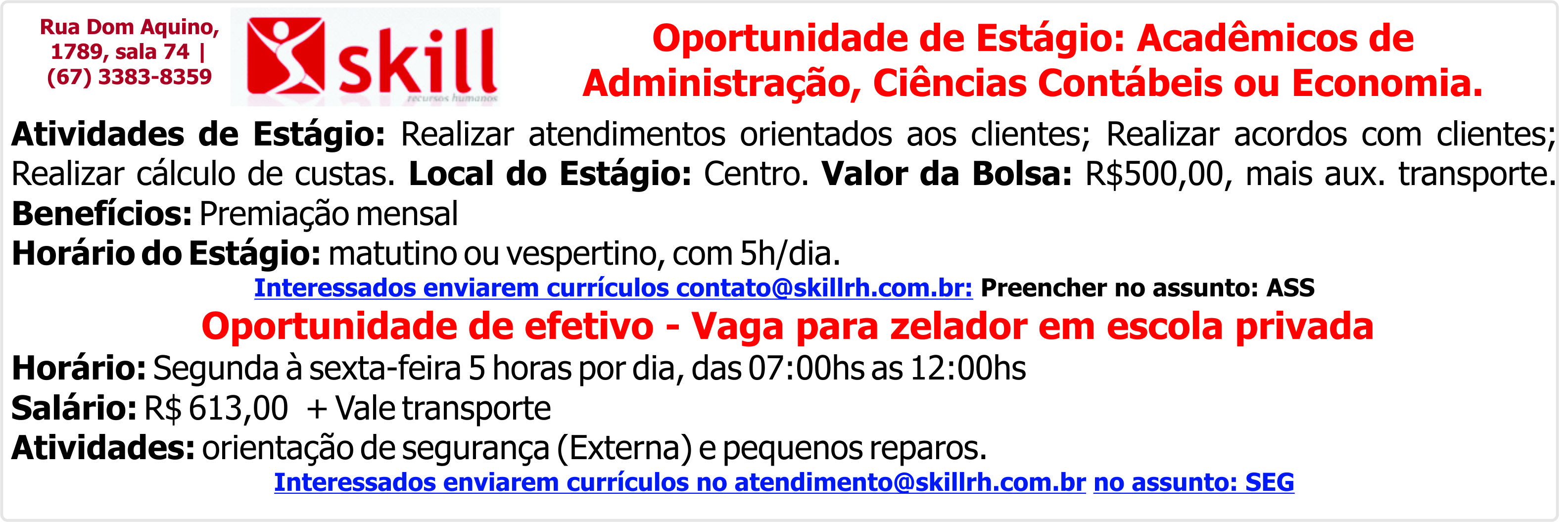 Oportunidade de Estágio: Acadêmicos de Administração, Ciências Contábeis ou Economia.