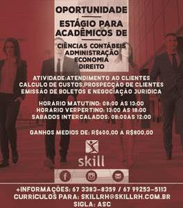 OPORTUNIDADE PARA ESTÁGIO (VAGAS URGENTES):