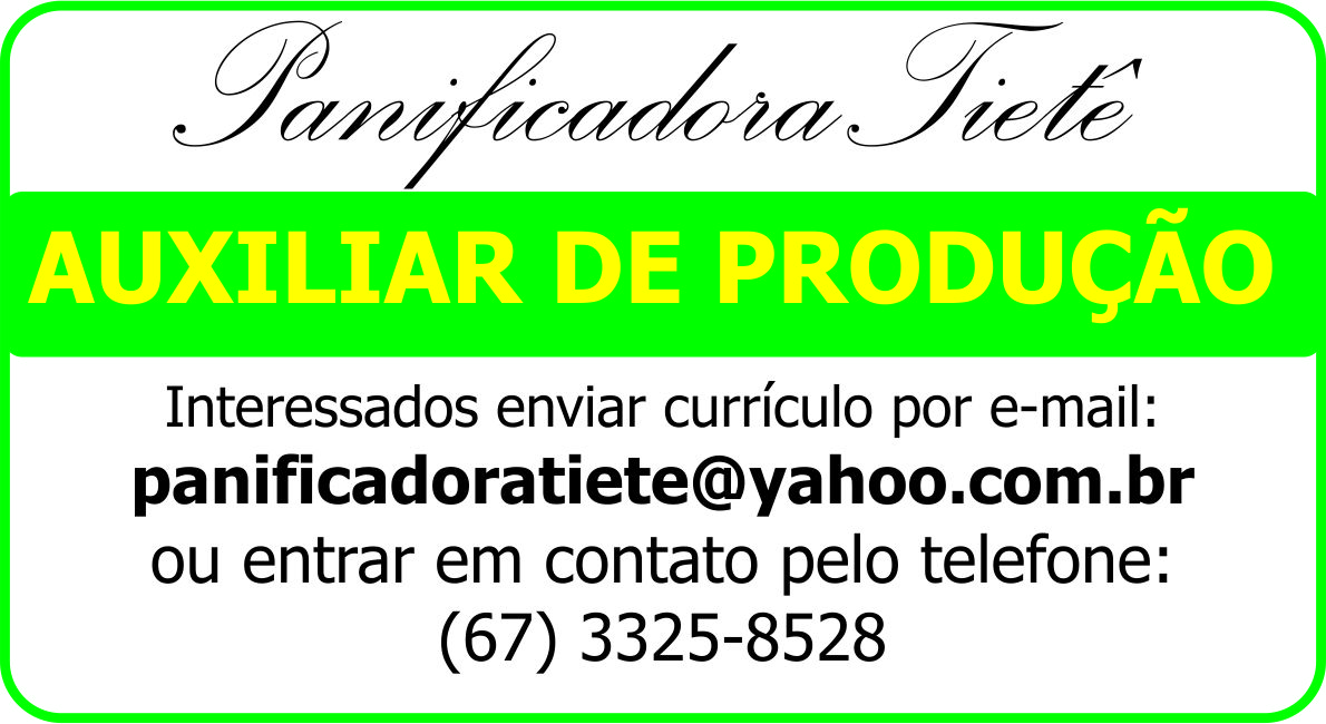 Panificadora Tietê Contrata: Auxiliar de Produção: