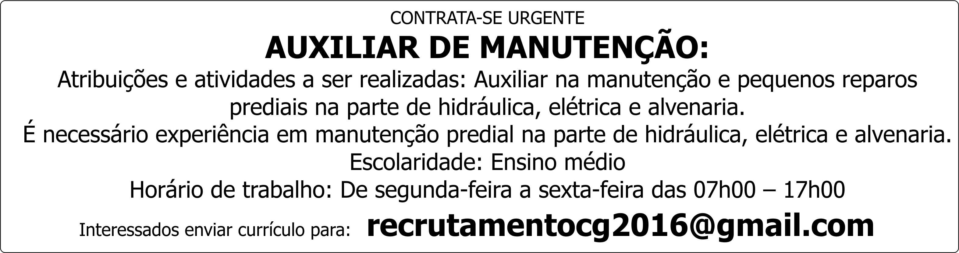 Para Auxiliar de Manutenção: