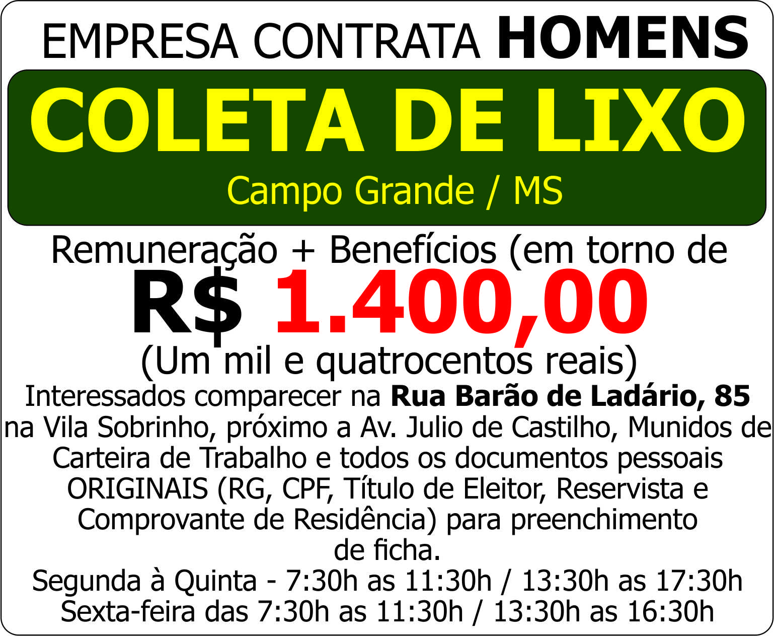 Segunda a Sexta-feira das 08h às 17h.