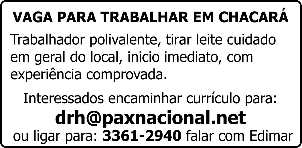 Trabalhador polivalente, tirar leite cuidado em geral do local, inicio imediato, com experiência comprovada.