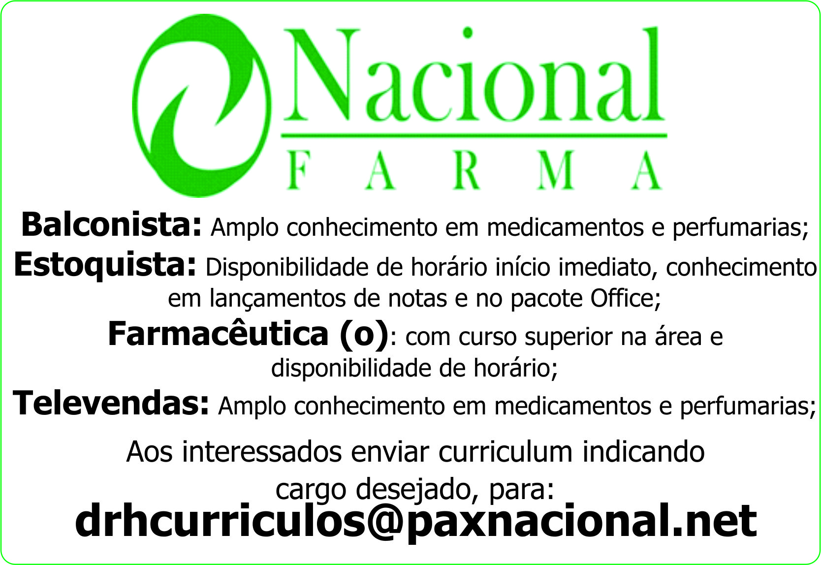 Televendas: Amplo conhecimento em medicamentos e perfumarias; Enviar currículo: