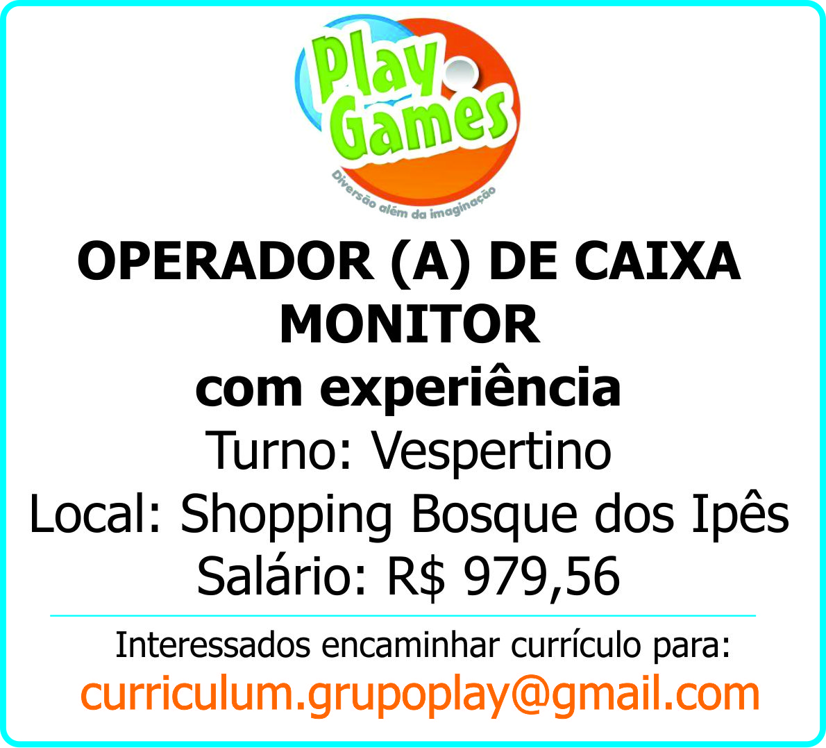 Play Games - Operador (A) de Caixa / Monitor (com experiência)