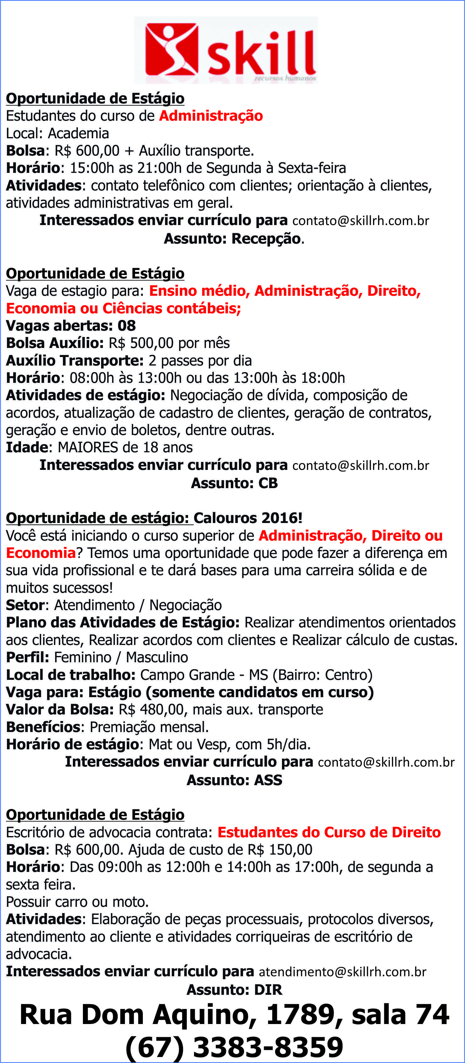 Procurando oportunidade de Estágios? SKILL RH