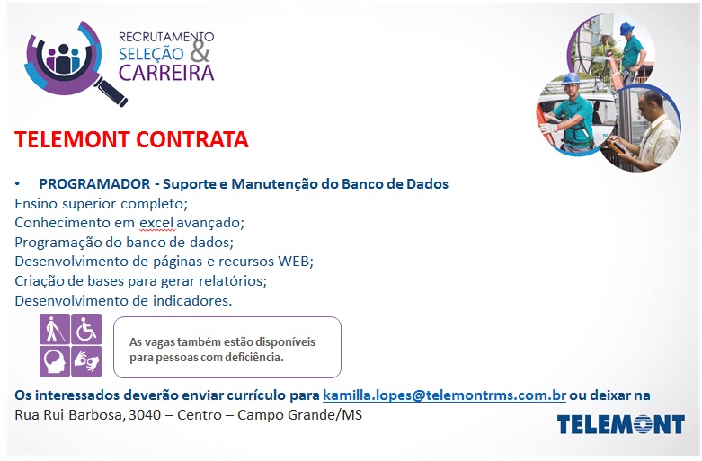 Os interessados deverão enviar currículo para [email protected] ou deixar na Rua Rui Barbosa, 3040 – Centro – Campo Grande/MS