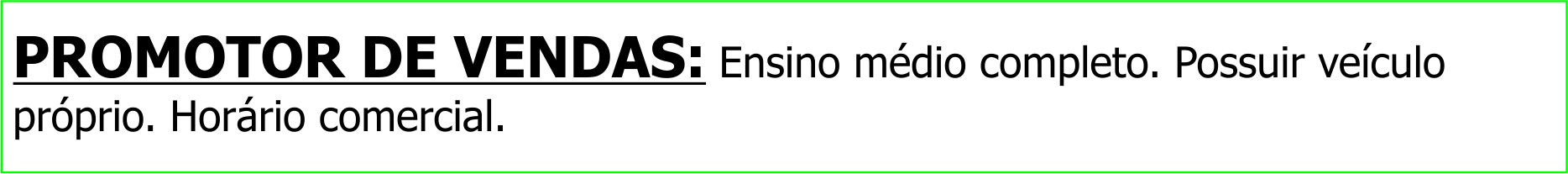 PROMOTOR DE VENDAS: Ensino médio completo. Possuir veículo próprio. Horário comercial.