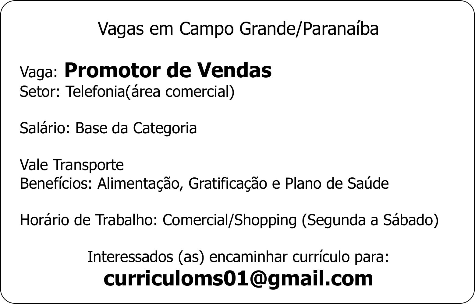 Vaga: Promotor de Vendas