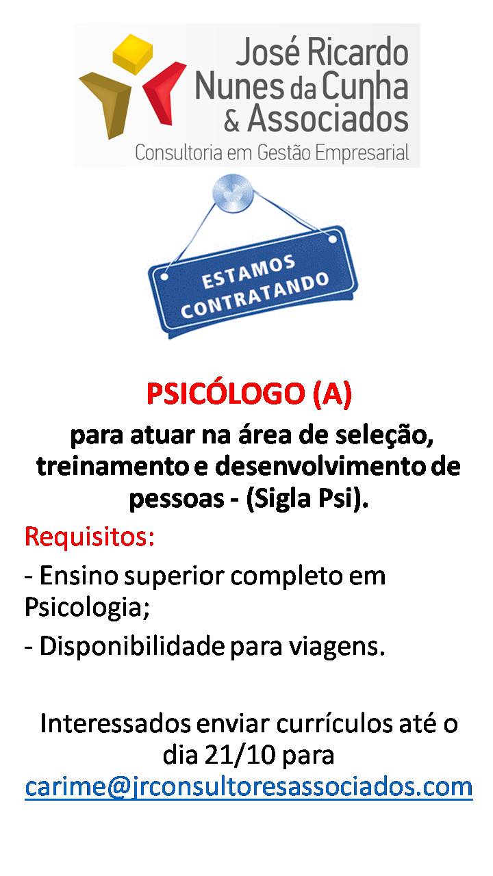 Psicólogo (a) (Atuar na área de Seleção, Treinamento e Desenvolvimento):