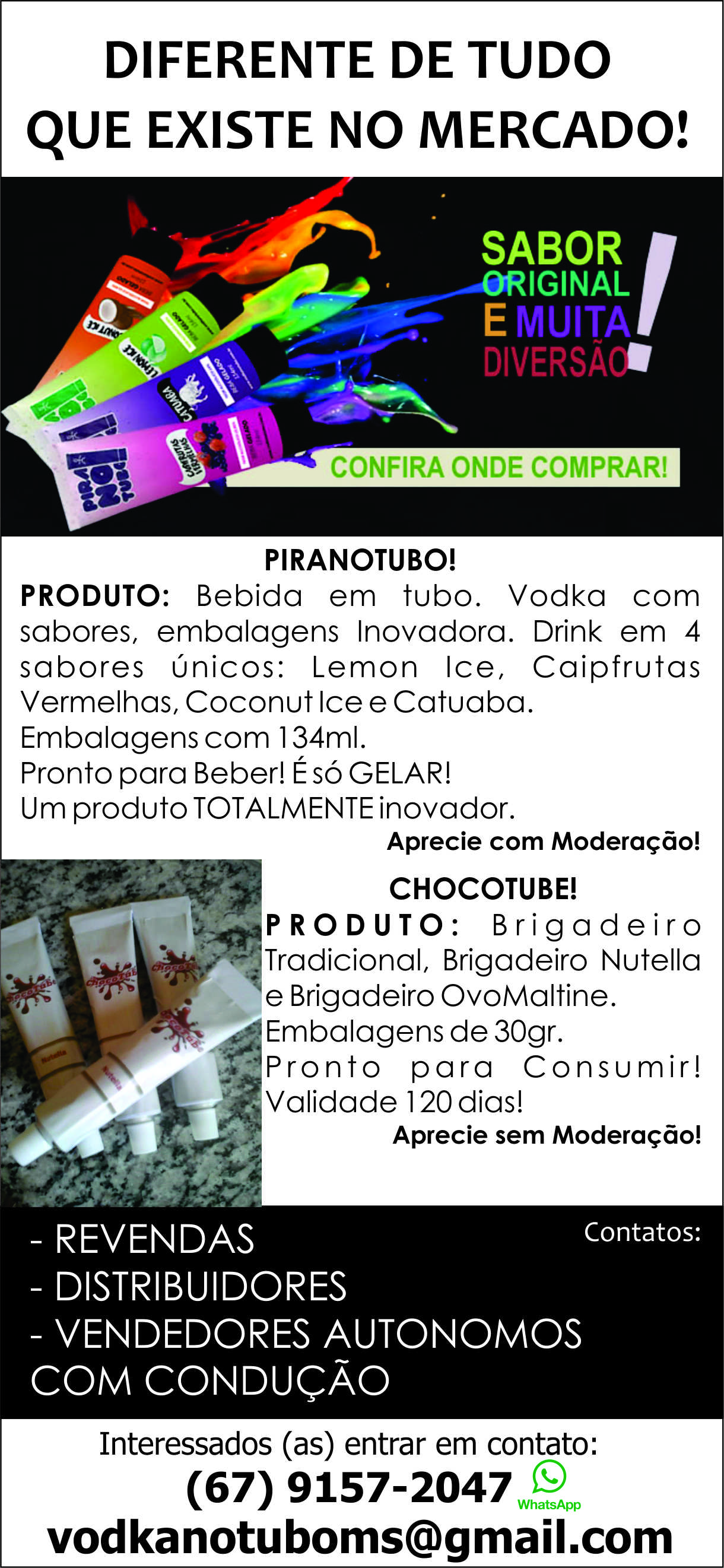 Revendas / Distribuidores / Vendedores Autonomos - PIRANOTUBO - CHOCOTUBE