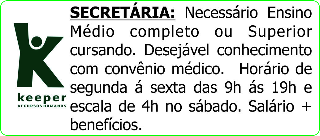 Necessário Ensino Médio completo ou Superior cursando. Desejável conhecimento com convênio médico. Horário de segunda á sexta das 9h ás 19h e escala de 4h no sábado. Salário + benefícios.