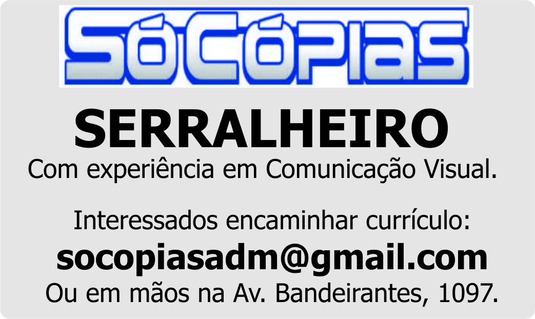 SERRALHEIRO COM EXPERIÊNCIA EM COMUNICAÇÃO VISUAL: