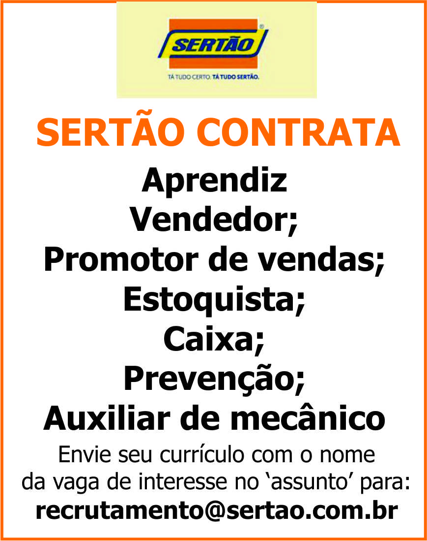 Sertão - Aprendiz / Vendedor / Promotor de Vendas / Estoquista / Caixa / Prevenção / Auxiliar de Mecânico
