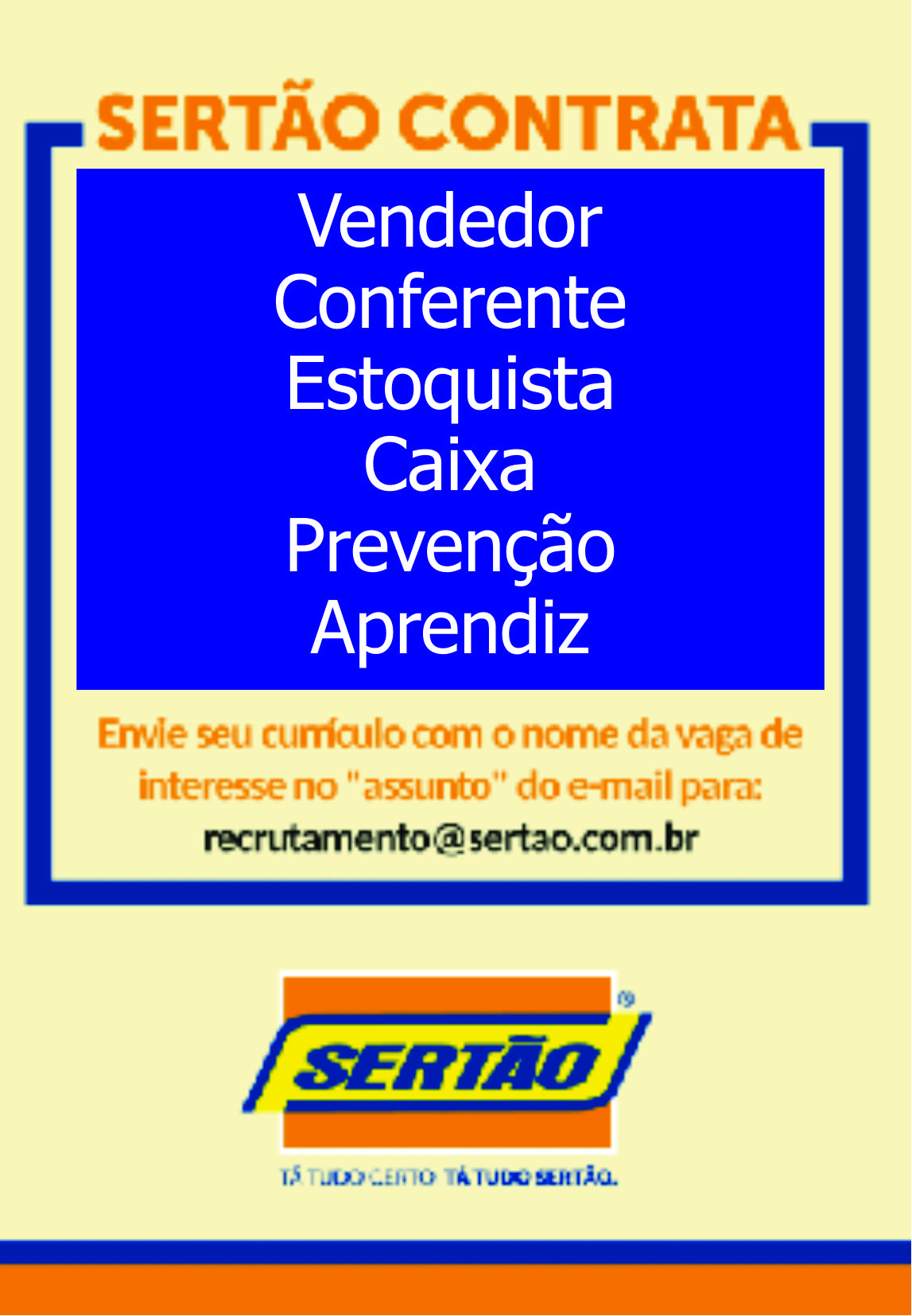 Sertão Contrata - Vendedor Conferente / Estoquista / Caixa / Prevenção / Aprendiz