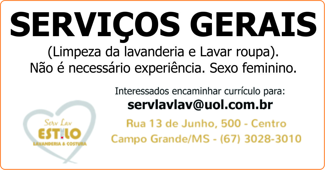 SERVIÇOS GERAIS (PARA LAVANDERIA: LIMPEZA DO LOCAL E LAVAR ROUPA):