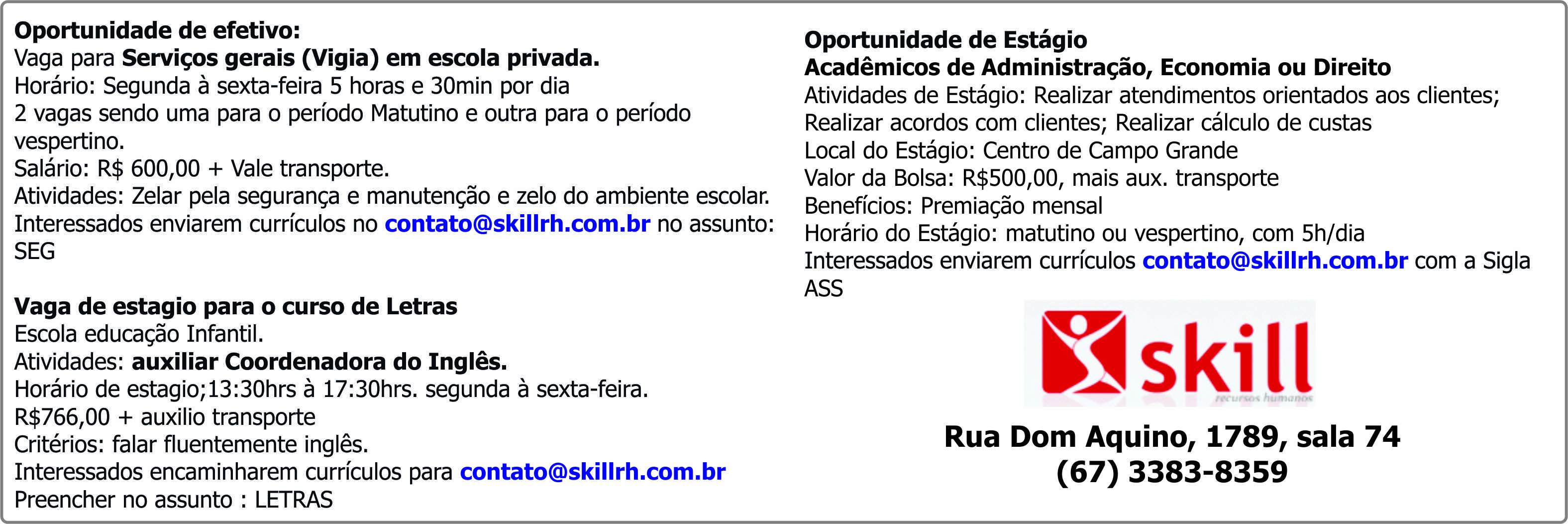 Skill - Oportunidade de ótimos estágios: