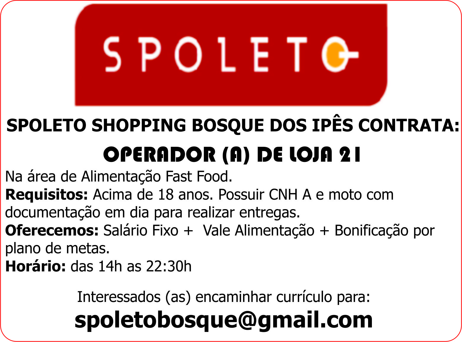 Oferecemos: Salário Fixo + Vale Alimentação + Bonificação por plano de metas.