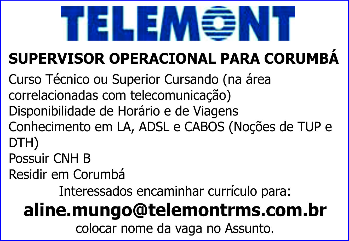 Residir em Corumbá Enviar currículo: