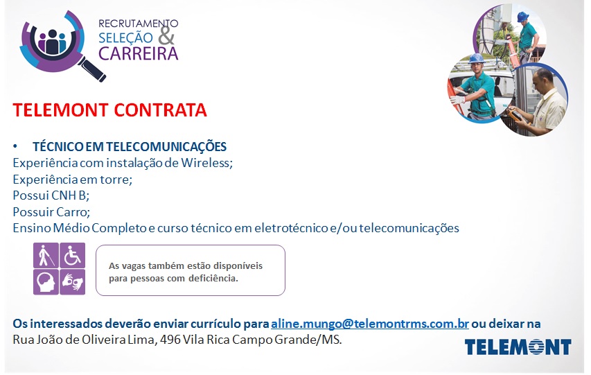 Ensino Médio Completo e curso técnico em eletrotécnico e/ou telecomunicações