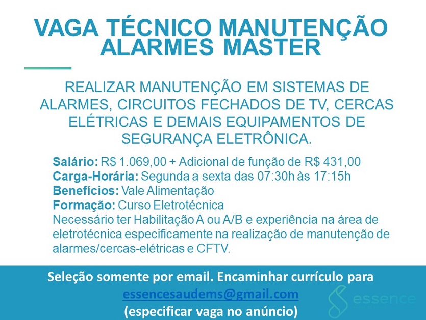 TÉCNICO DE MANUTENÇÃO DE ALARMES MASTER:
