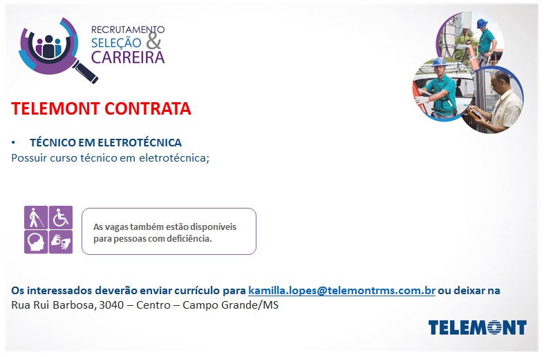 As vagas também estão disponíveis para pessoas com deficiência.Os interessados deverão enviar currículo para