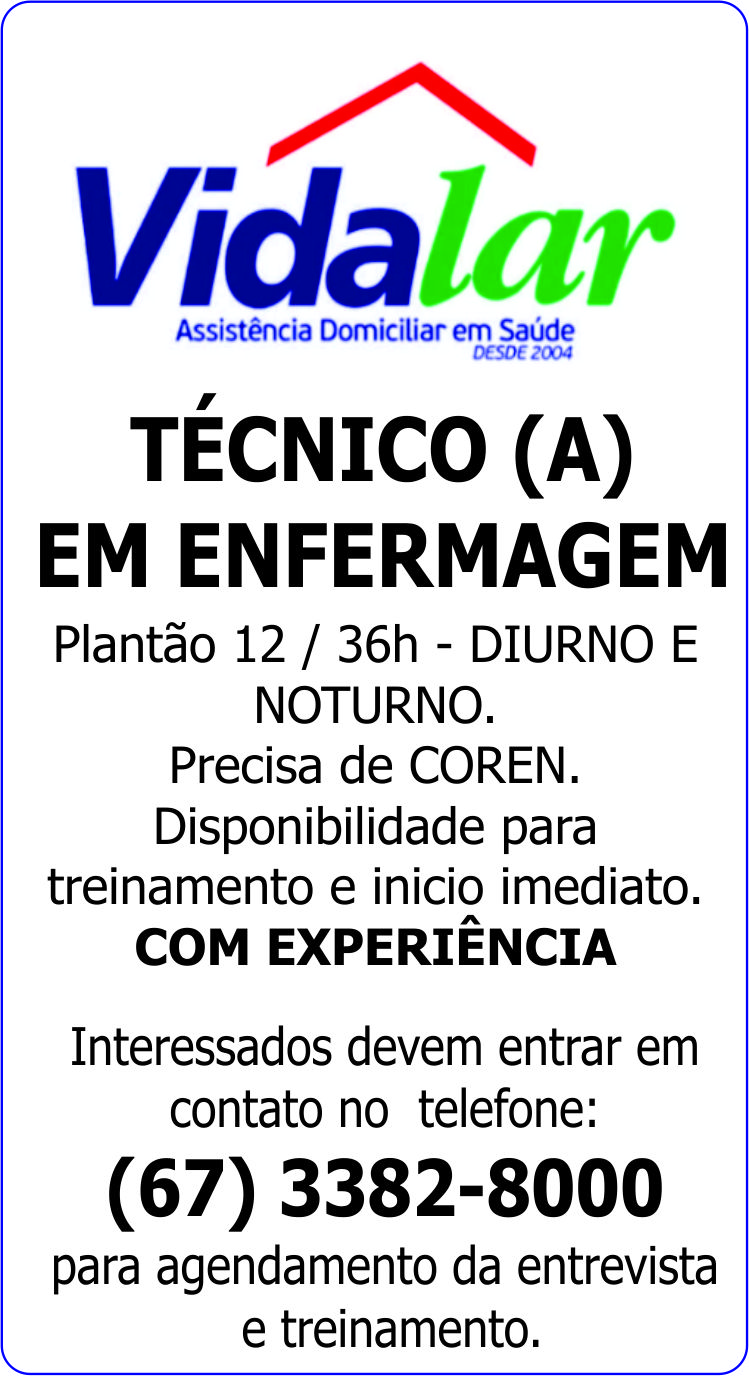 Interessados devem entrar em contato no telefone: (67) 3382-8000 para agendamento da entrevista e treinamento.