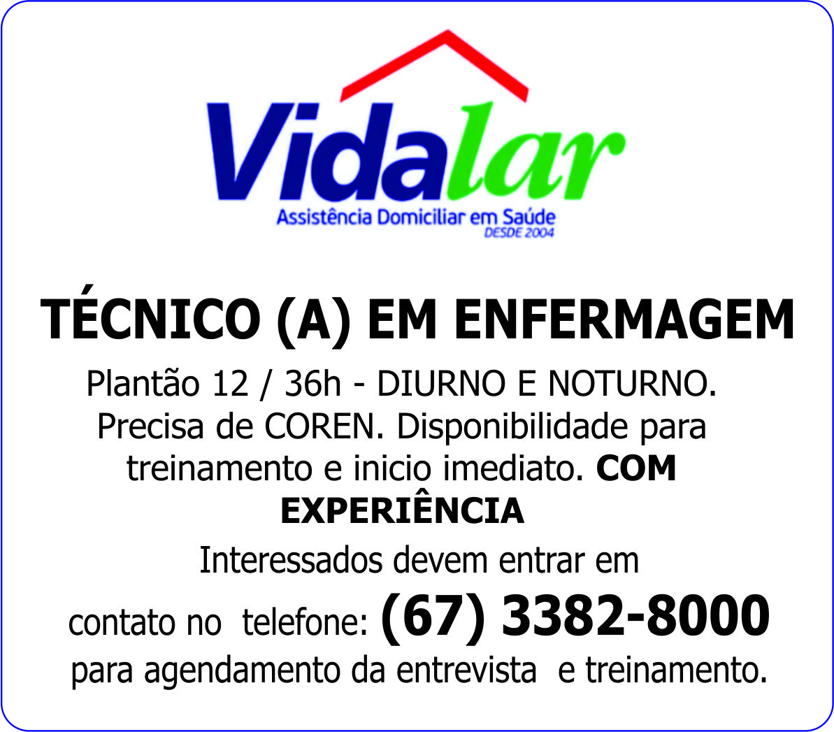 Precisa de COREN. Disponibilidade para treinamento e inicio imediato. COM EXPERIÊNCIA