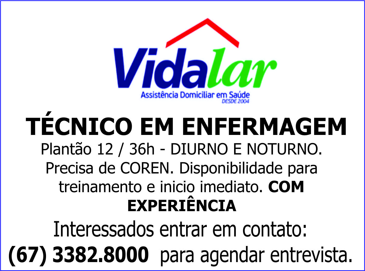 (67) 3382.8000 para agendar entrevista.