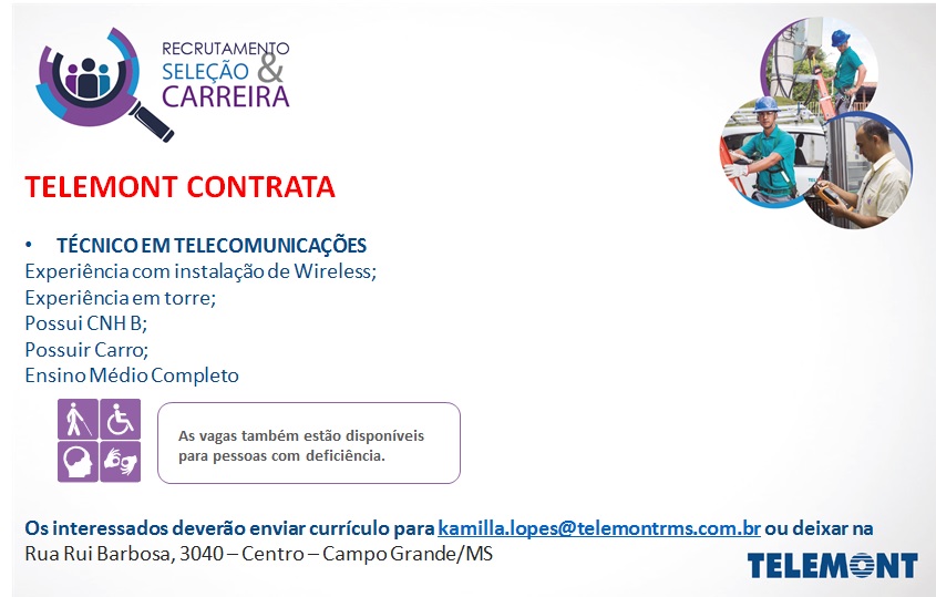 Os interessados deverão enviar currículo para [email protected] ou deixar na Rua Rui Barbosa, 3040 – Centro – Campo Grande/MS