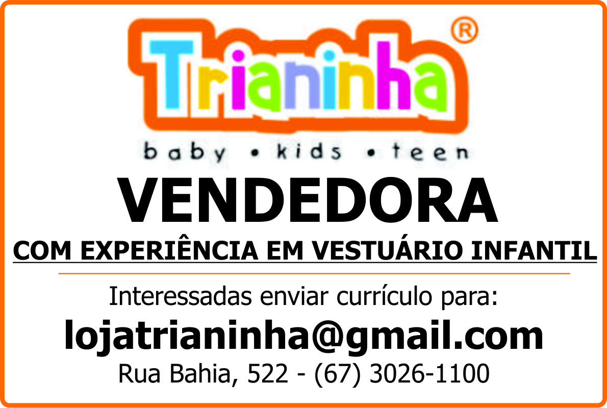 TRIANINHA CONTRATA VENDEDOR INTERNA: