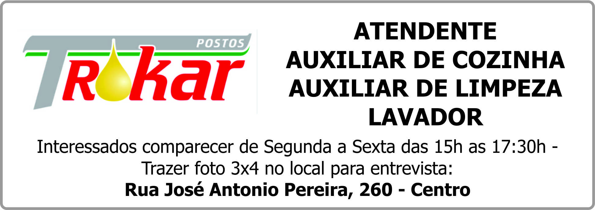 Trokar - Atendente / Auxiliar de Cozinha / auxiliar de Limpea / Lavador