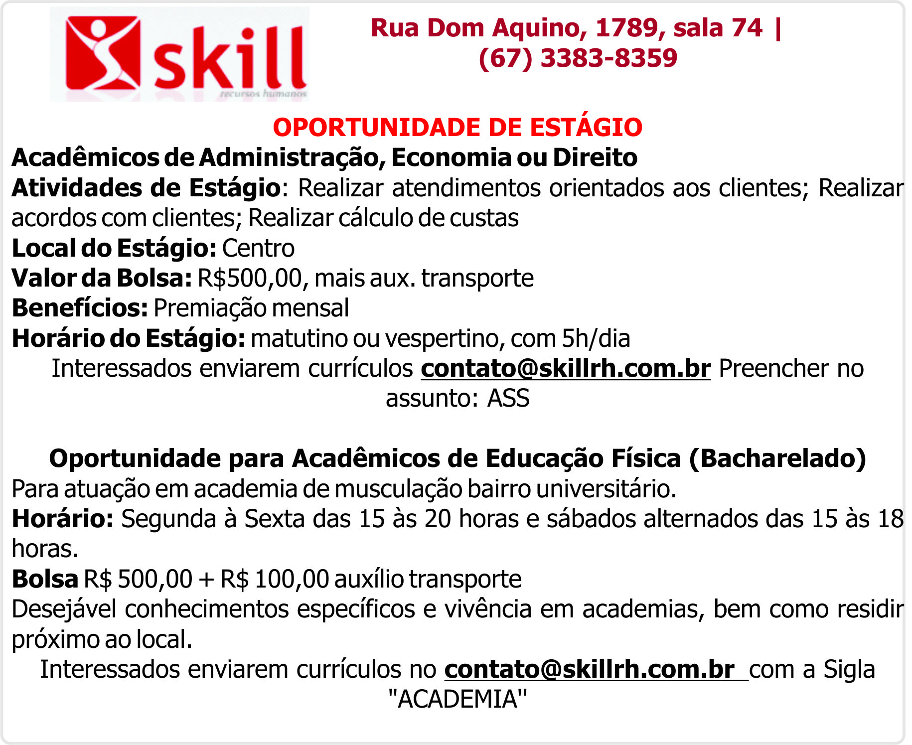 Rua Dom Aquino, 1789, sala 74 | (67) 3383-8359