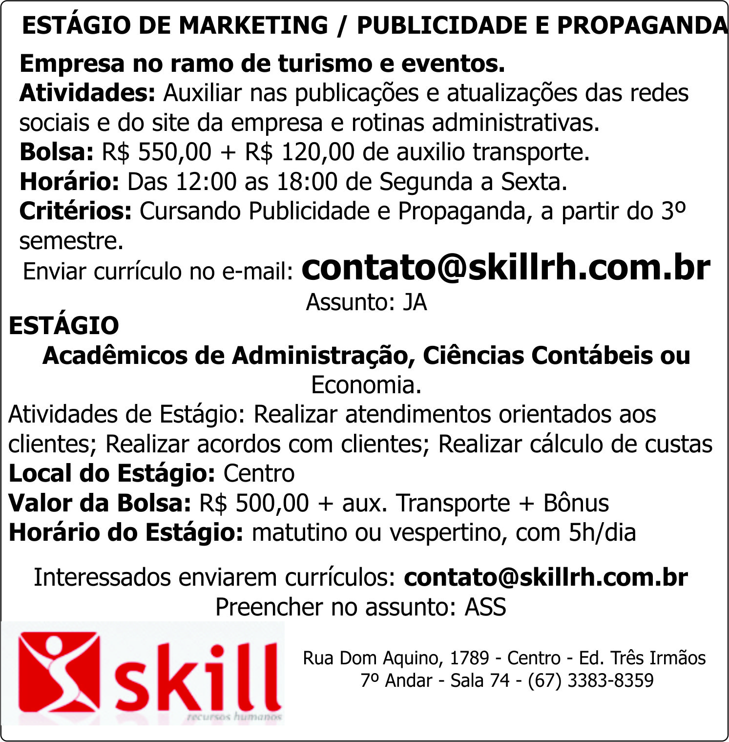 VAGAS PARA ESTÁGIOS: