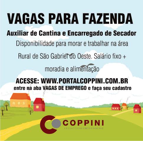 Vagas para Fazenda: Auxiliar de Cantina e Encarregado de Secador (São Gabriel do Oeste)
