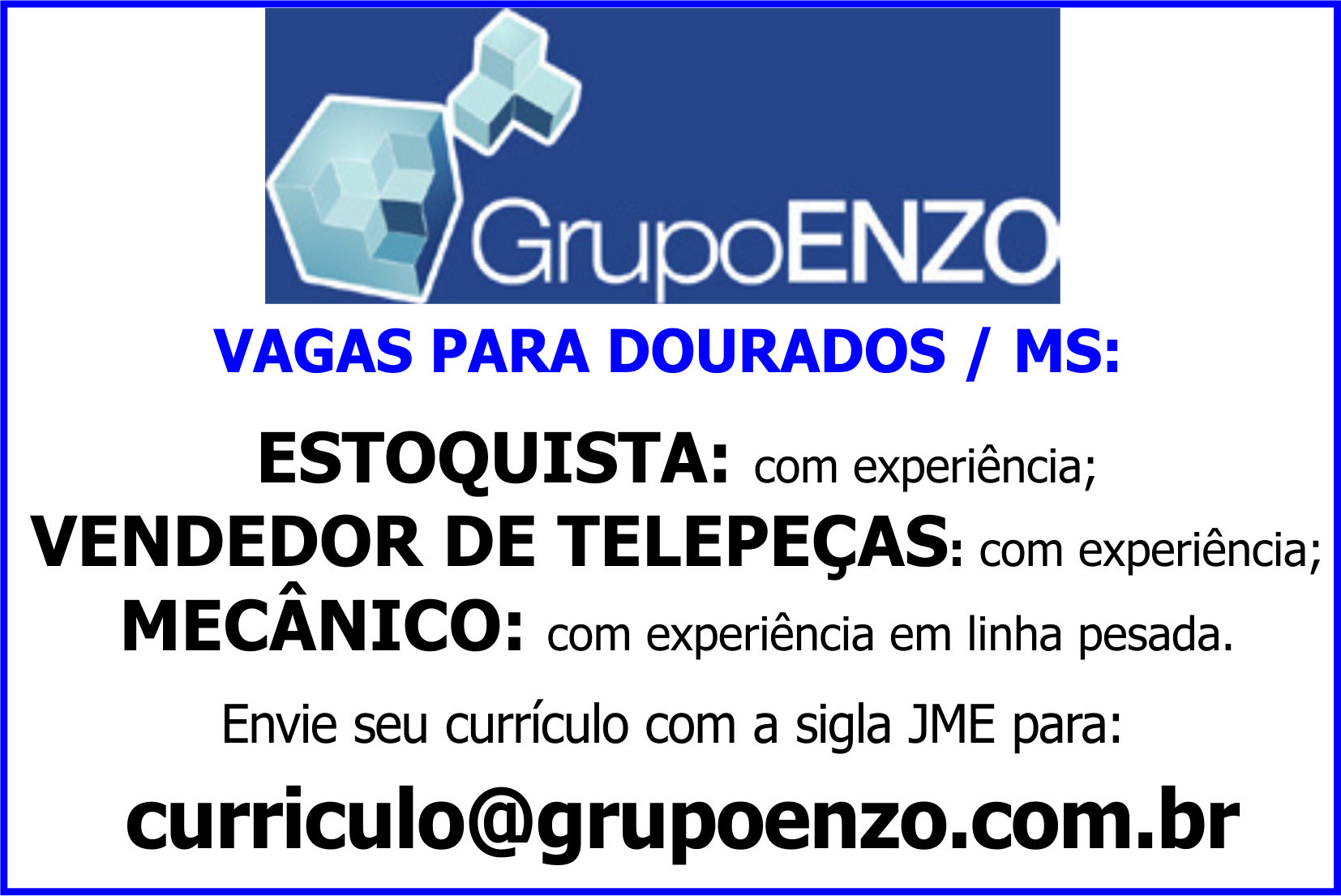 VAGAS PARA GRUPO ENZO (DOURADOS):
