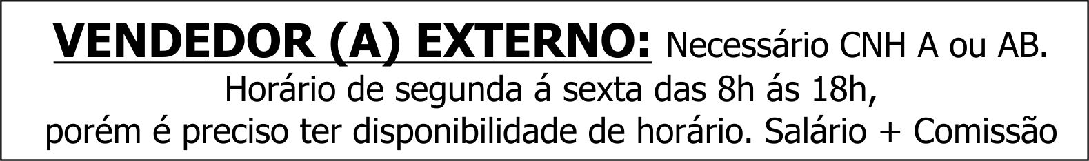 Horário de segunda á sexta das 8h ás 18h, porém é preciso ter disponibilidade de horário. Salário + ComissãoINTERESSADOS ENVIAR CURRÍCULOS PARA